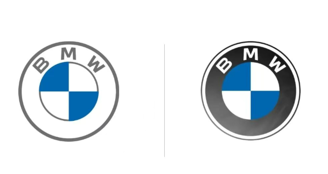 对比新老LOGO来看,新LOGO整体框架变化并不是特别明显,但对细节进行了诸多调整。新LOGO取消了原有内圈镀铬环与蓝白分割的镀铬条,取而代之的是更有质感的哑光黑环样式,内部则依然采用蓝白相间图案,但蓝白配色饱和度更高,整体设计趋向扁平化和极简化,更符合当下车标主流。