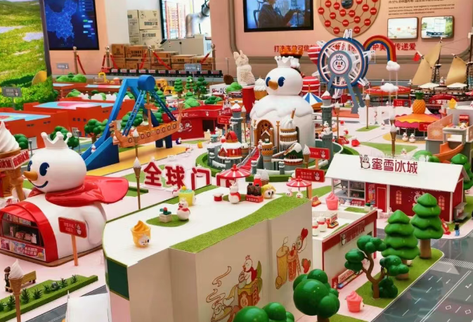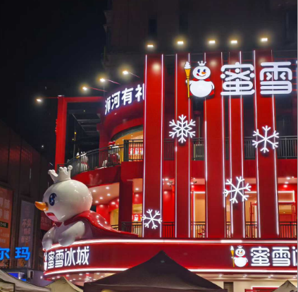 围绕雪王IP布局,蜜雪冰城也做了很多尝试,推出《雪王驾到》《雪王之奇幻沙洲》等动画作品,以及《雪王在古代卖咖啡》《雪王的穿越日记》等短剧,以奇幻冒险故事吸引用户;打造雪王主题门店、旗舰店,如杭州西溪银泰城旗舰店、成都“雪王城堡”等,提供沉浸式消费体验;举办雪王巡展、雪王生日庆典等活动,设置互动环节、限定周边,吸引用户参与;在哈尔滨等地布置雪王雪雕、冰雕城堡等景观,结合当地文旅资源,打造冬季营销热点。