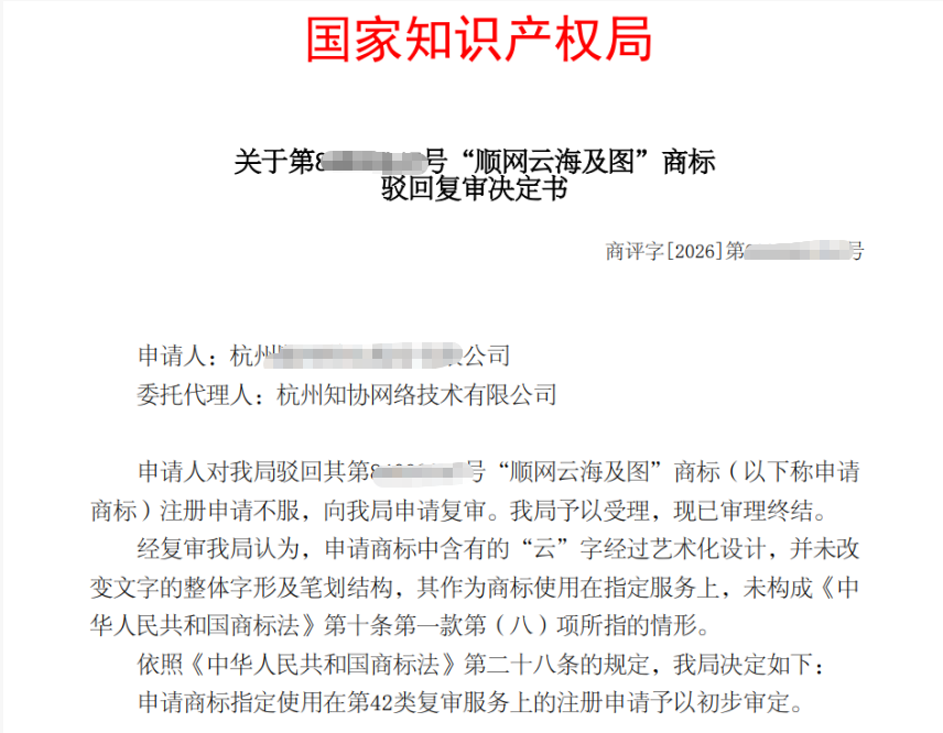 知协商标成功案例丨商标因艺术设计被驳回,复审成功!